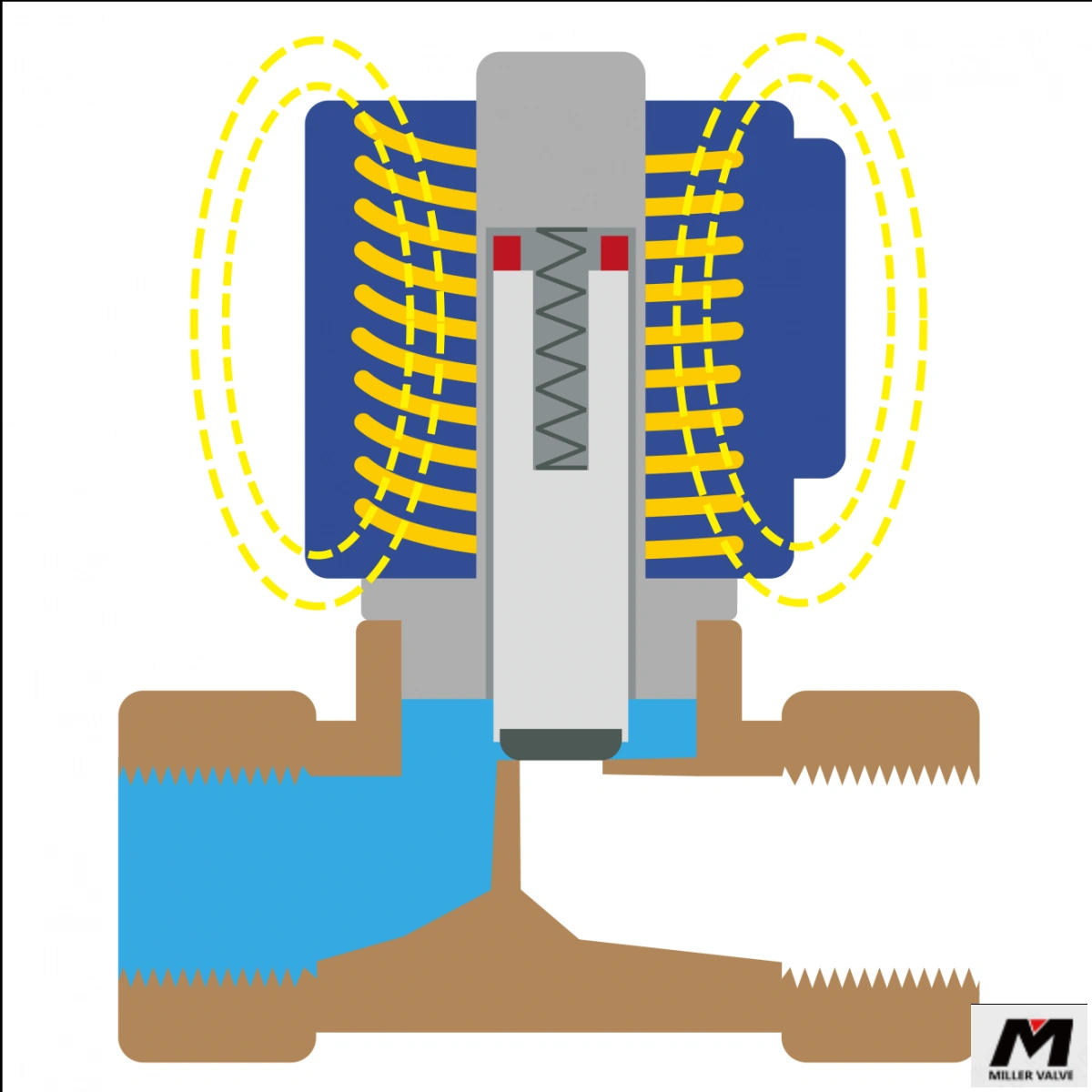 螺線管的兩個(gè)主要類別是 NO 和 NC - 常開(kāi)和常閉。當(dāng)向線圈施加電流時(shí),會(huì)產(chǎn)生磁場(chǎng),其強(qiáng)度取決于電流、導(dǎo)線的繞組數(shù)和移動(dòng)鐵芯(也稱為活塞)的材料。磁場(chǎng)移動(dòng)該柱塞,從而關(guān)閉或打開(kāi)閥門(mén)。在沒(méi)有電源的情況下,閥門(mén)可以關(guān)閉或打開(kāi)。