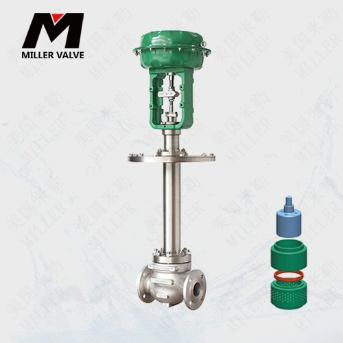 美國米勒進(jìn)口氣動(dòng)低溫調(diào)節(jié)閥專門對(duì)低溫工況如液氮,LNG,液氧,液氫等超低溫介質(zhì)開發(fā)的調(diào)節(jié)閥,閥芯采用套筒導(dǎo)向,壓力平衡式閥芯,閥桿采用長頸型上閥蓋的作用,使填料處于常溫下工作,并減少外界熱能傳入,為減少傳遞,長頸一般采用薄壁結(jié)構(gòu),具有良好的耐低溫性,特別用于精確控低溫氣體、流體的工藝參數(shù)保持在給定值。